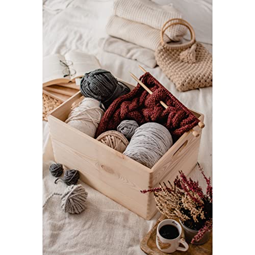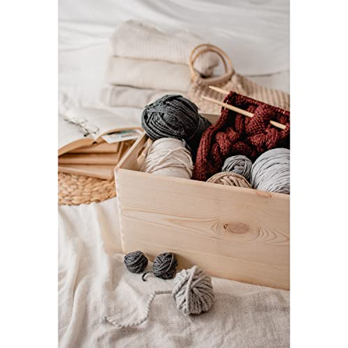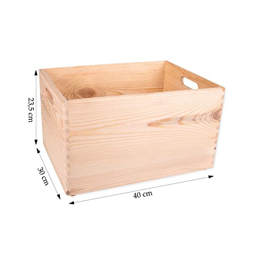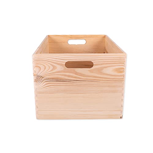 DECOCRAFT - صندوق خشب غير مطلي بدون غطاء بمقابض للتخزين والديكور والتنظيم، حرفية خشبية طبيعية كبيرة، ديكور منزلي ريفي، 40 × 30 × 23 سم