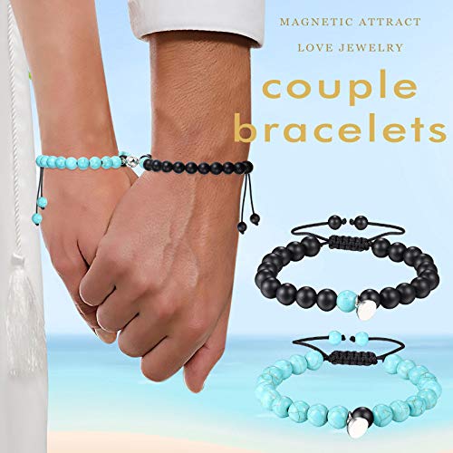 generic - اساور للازواج من انجينت ذم، سوار للعلاقات عن بعد للصديق والصديقة والنساء والرجال والاحباء والاصدقاء، 7.1-11 انش، بدون احجار كريمة - تركواز