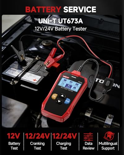 UNI-T - جهاز اختبار بطارية السيارة UT673A/ UT675A/ UT677A من يوني-تريند، جهاز اختبار بطارية السيارة ومحلل شاحن بجهد 12 فولت/ 24 فولت لاختبار بطارية السيارة (UT673A)