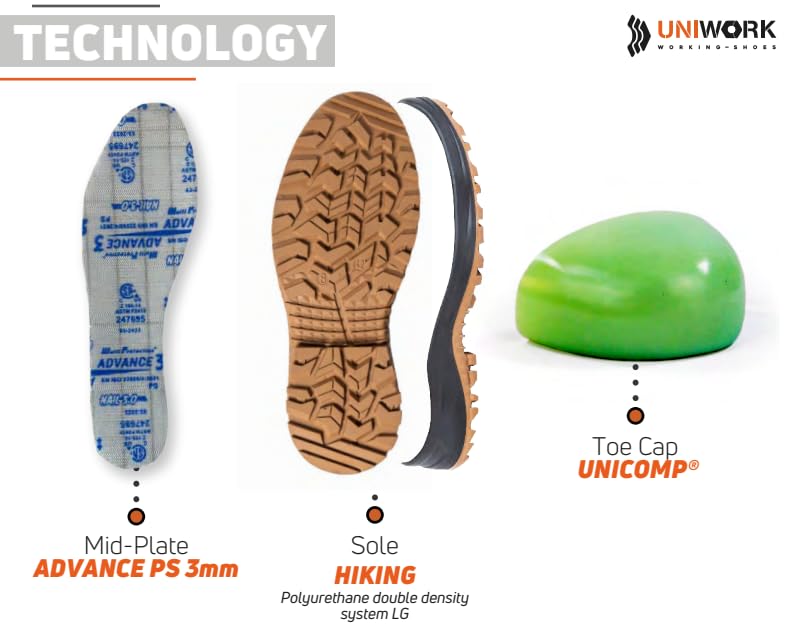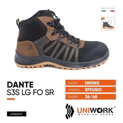 Generic - حذاء سلامة للعمل دانتي S3S CI HI FO LG S برقبة عالية، اسود وبني (47) من يوني وورك