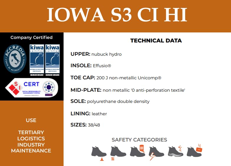 Generic - حذاء عمل سيفتي ايوا S3S CI HI FO SR من يوني وورك، اسود مع نعل بيج داكن (42)