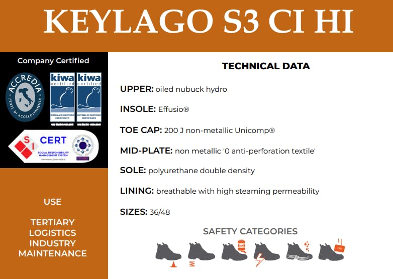 Generic - حذاء سيفتي للعمل كيلاجو S3S CI HI FO SR من يوني وورك، اسود (40)