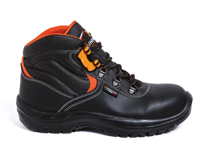 Generic - حذاء سيفتي ساليرنو S3 SRC من يوني وورك، اسود مع لمسات برتقالية، حذاء عمل برقبة عالية (40)