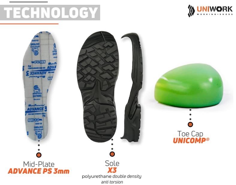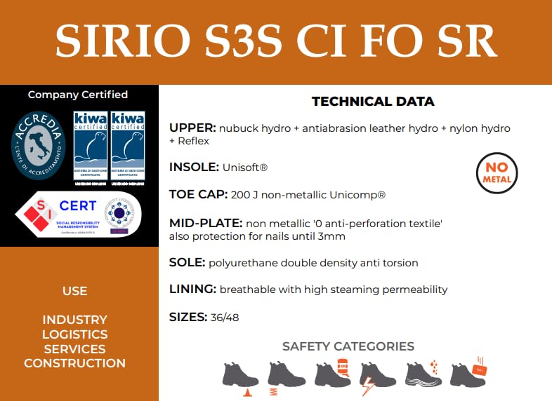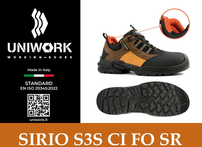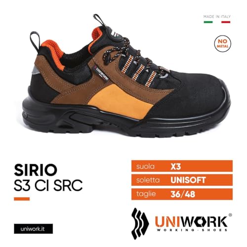 Generic - حذاء سيريو S3S CI FO SR من يوني وورك، اسود وبني وبرتقالي، حذاء عمل (46)