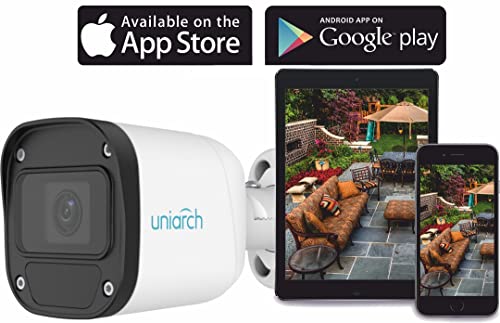 uniarch - كاميرا مراقبة خارجية - IP بعدسة شبكية 4.0 ملم من يونيارك، الطاقة عبر الايثرنت (ميكروفون 2 ميجابكسل)، أبيض، لاسلكي
