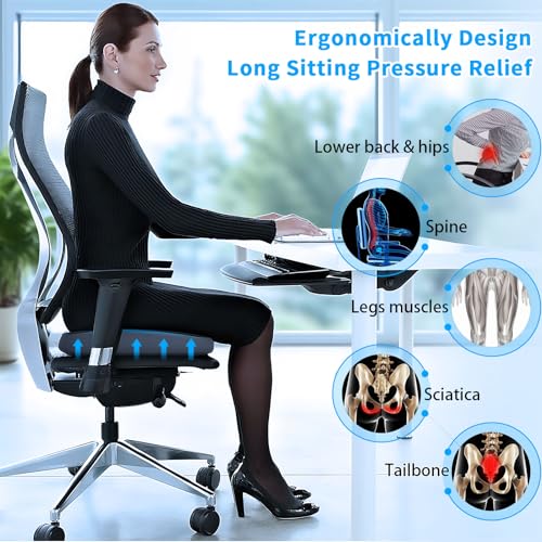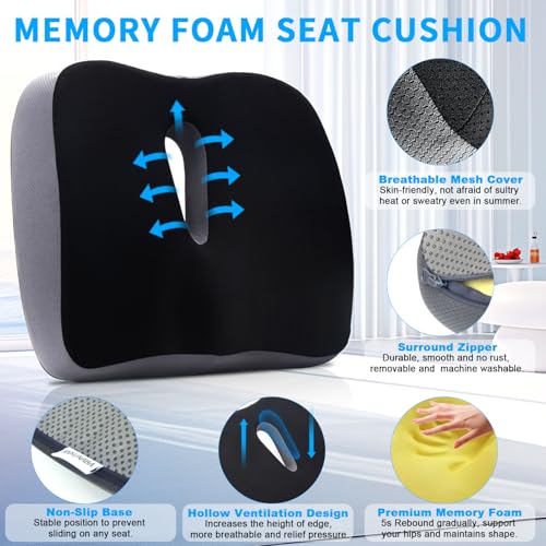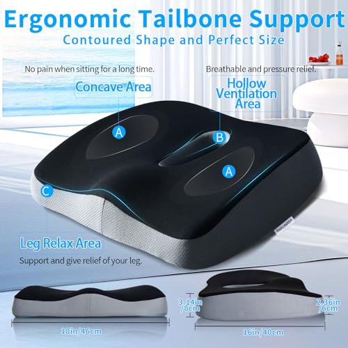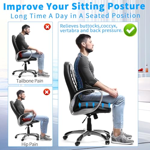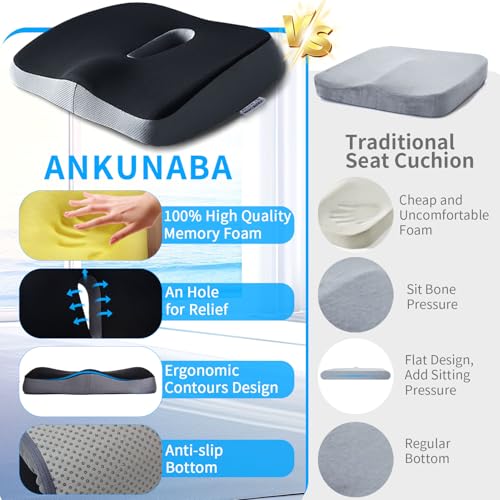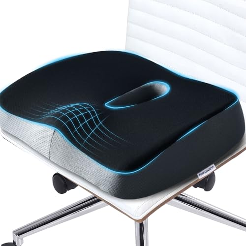 ANKUNABA - وسادة مقعد، وسائد كرسي مكتب للجلوس فترات طويلة من فوم الميموري غير قابلة للانزلاق لتخفيف آلام العصعص وعرق النسا والظهر، وسادة لتقويم العظام للسيارة والكرسي المتحرك وكراسي مكتب الكمبيوتر من يونيبانا