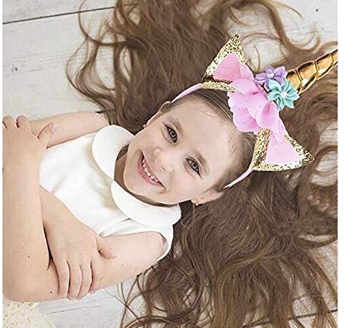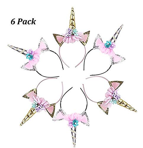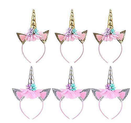 Generic - عصابة رأس وحيد القرن للبنات ذات القرن الذهبي والفضي ، ملحقات أغطية الرأس لمستلزمات الحفلات - 6 عبوات ، 2724669297998