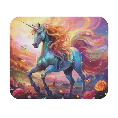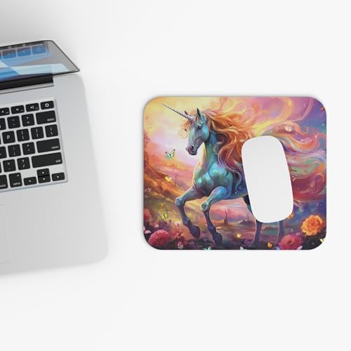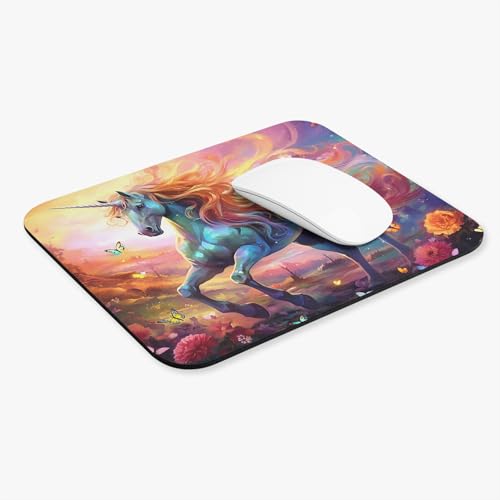 Generic - قاعدة ماوس بتصميم يونيكورن في حقل الزهور - تصميم فني - سجادة مكتب ناعمة ومريحة للالعاب والعمل - قاعدة ماوس متينة مضادة للانزلاق - 109