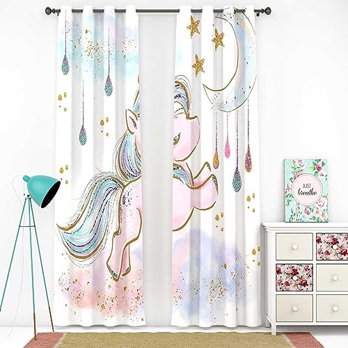 Shatta Fabrics and Curtains - ستارة استحمام للاطفال بتصميم يونيكورن مكونة من 51 حلقة جانبية شاتا فابركس اند كيرتنز سادة
