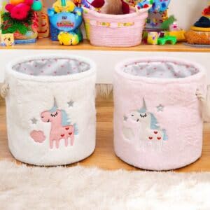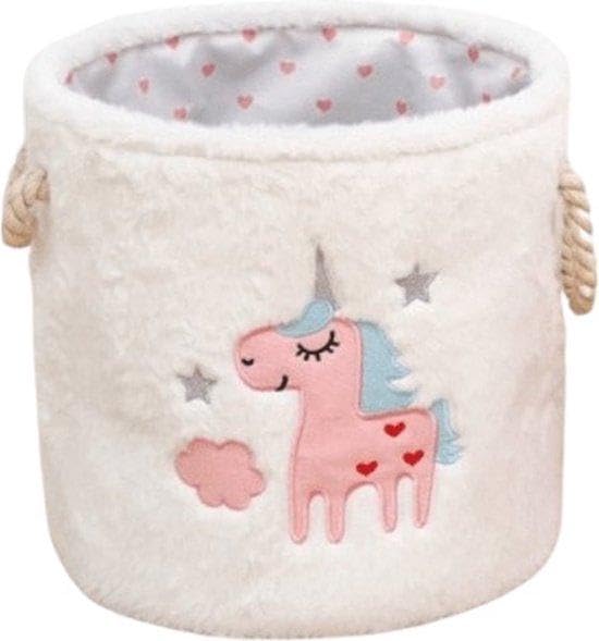 Generic - سلة تخزين من الفرو الصناعي بتصميم يونيكورن لغرف الاطفال بلون ابيض