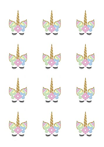 generic - ملصقات دائرية بتصميم يونيكورن، 24 قطعة