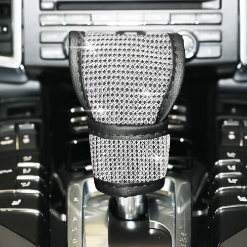Unifizz - غطاء واقي لمقبض ناقل الحركة بلون أبيض لامع للسيارة، غطاء ناقل الحركة مع أحجار الراين اللامعة لحماية عصا التروس، اكسسوارات تزيين عالمية للسيارة من يونيفيز