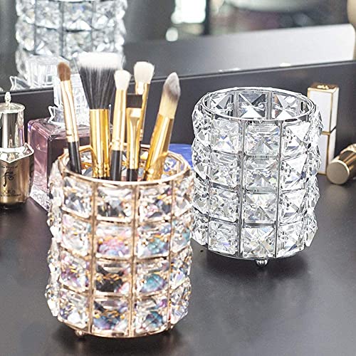 Unihom - حامل فرش مكياج كريستالي ذهبي وردي من يونيهوم ومنظم أقلام بسطح أملس ومتين للاستخدام.