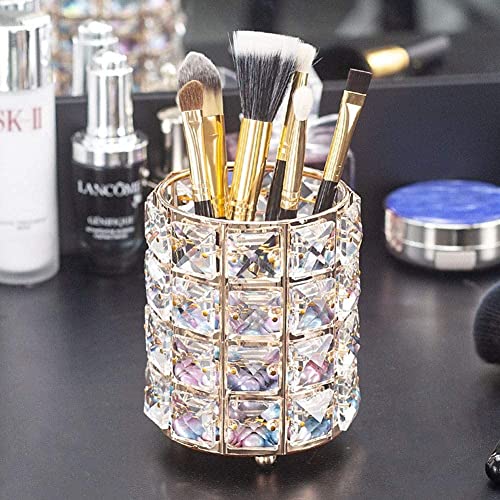 - 【منظم فرش الزينة الكريستالي المصنوع يدويًا】: حامل فرش المكياج المحمول لمستحضرات التجميل مصنوع يدويًا، سطح الكوب أملس جدًا، لا تقلق من أن كوب حامل فرش المكياج سيخدش يديك. حامل منظم فرش المكياج الخاص بنا مصنوع من هيكل لحام معدني، وهو قوي ومتين، والكريستال الموجود على حامل فرش المكياج الكريستالي صغير الحجم ومتين، لا تقلق بشأن سقوط الكريستال.