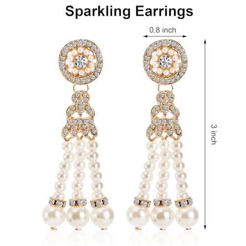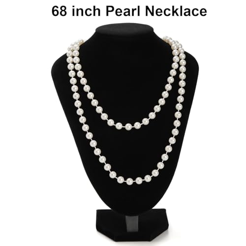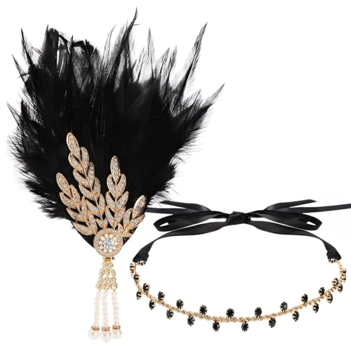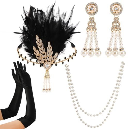 Uniiking - طقم اكسسوارات للنساء مستوحى من عشرينيات القرن العشرين، يتضمن رباط رأس للحفلات مزينة بالريش على طراز فلابر، عقد وحلقان من اللؤلؤ وجوانتي وحامل بنمط دعامة صناعية من يوني كينج®