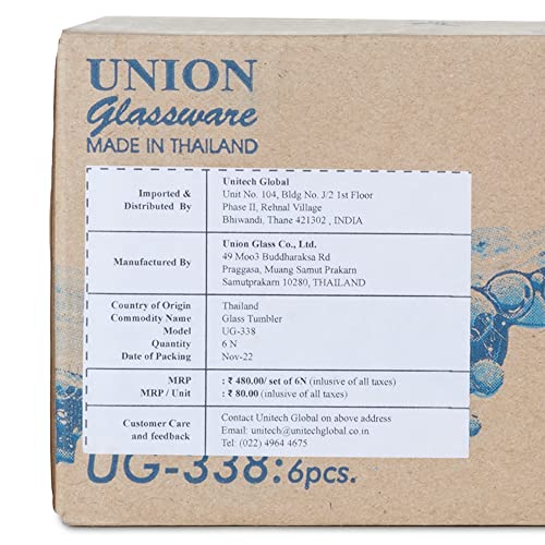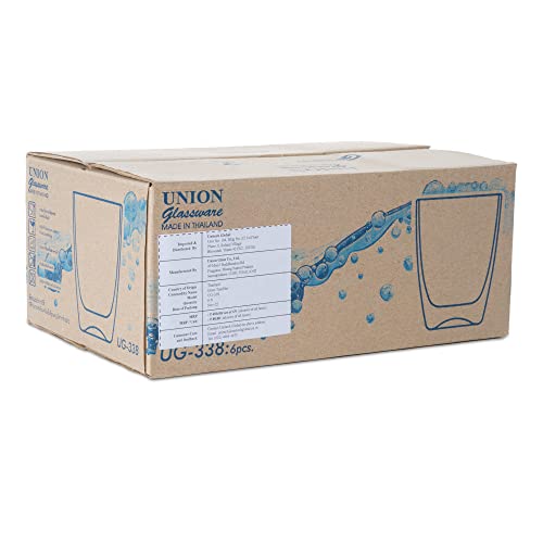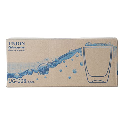 Union - اكواب زجاجية متينة وامنة للاستخدام في غسالة الصحون بسعة 262 مل (9 اونصة) (عبوة من 6 قطع) UG-338، أبيض