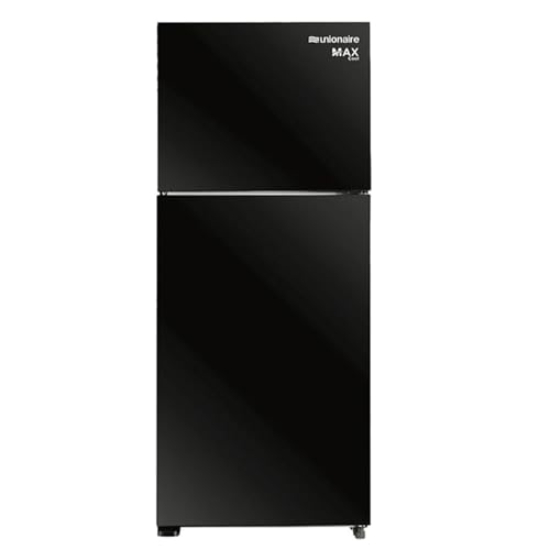unionaire - ثلاجة من يونيونير موديل URN-420LBG1A-MH بباب مزدوج، سعة 350 لتر، باللون الأسود، مع تقنية نو فروست وإضاءة LED وتنقية هواء بلازما