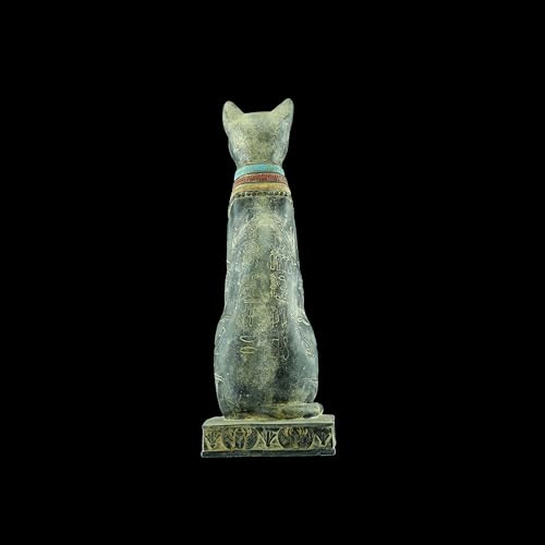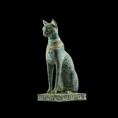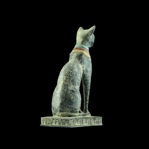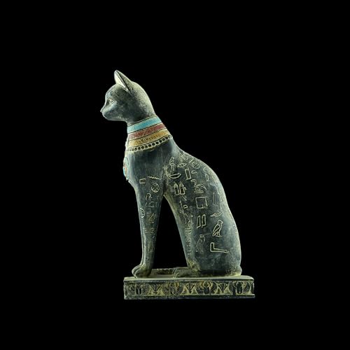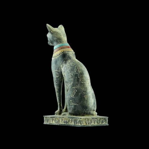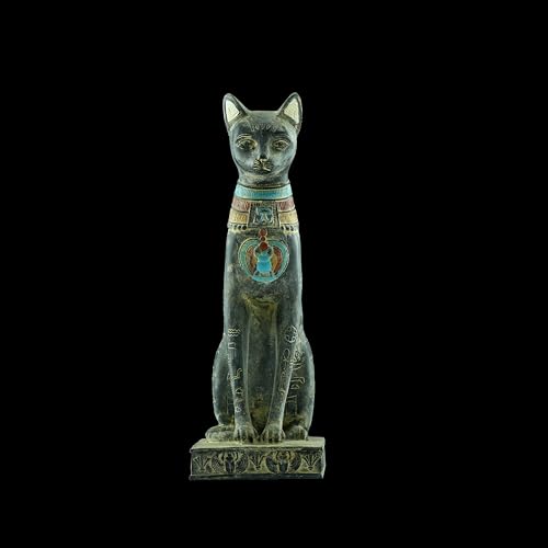 Generic - تمثال فني مميز يجسد القطة الإلهة باستت بتفاصيل دقيقة، يضم خنفساء مجنحة وعين حورس على الصدر مع رموز هيروغليفية منقوشة على جسدها، أسود حجر ثقيل أسود صنع في مصر