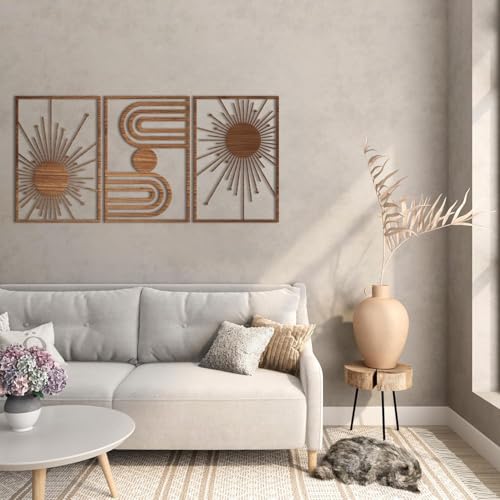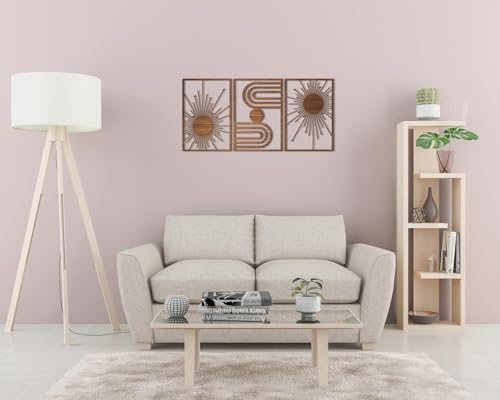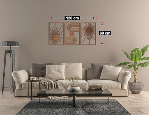 Generic - لوحة فنية جدارية خشبية بوهو فريدة من نوعها - مجموعة من 3 لوحات لكل منها 60 × 40 لون بني