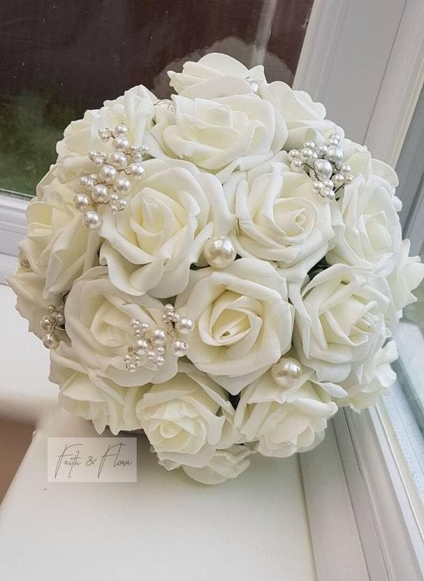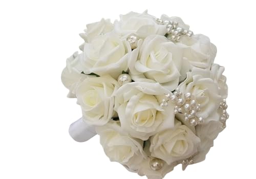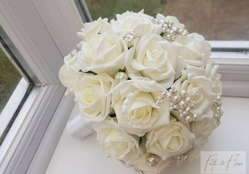 UNIQUE BRIDAL ACCESSORIES - باقة زهور بيضاء اصطناعية فريدة من نوعها لحفلات الزفاف، مصممة خصيصًا لحفلات الزفاف المسيحية وحفلات الزفاف وحفلات الاستقبال والحفلات 17 زهرة