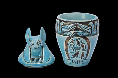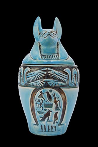 - تحنيط يقف مع رأس آوى وجسم الإنسان. مصنوع يدويًا في مصر من الحجر الجيري ومطلي يدويًا.