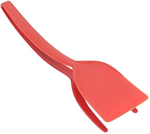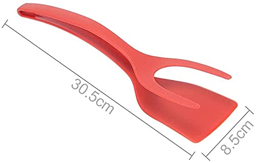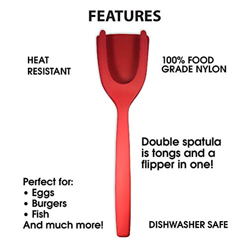 UNIQUE CART - ملعقة مسطحة مزدوجة من يونيك كارت، مشبك طعام غير لاصق 2 في 1 من السيليكون لتقليب البيض والبان كيك والخبز والشواء لقبضة الطعام والقلب (أحمر)