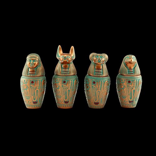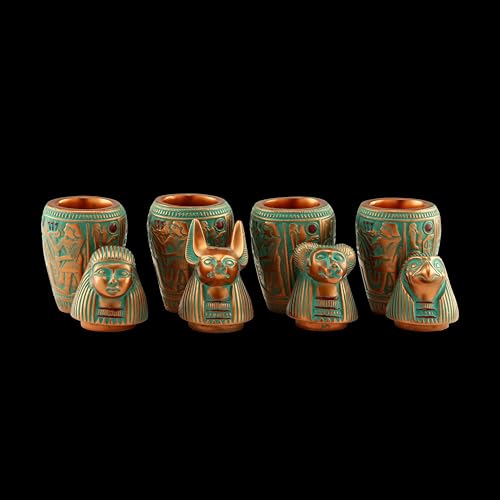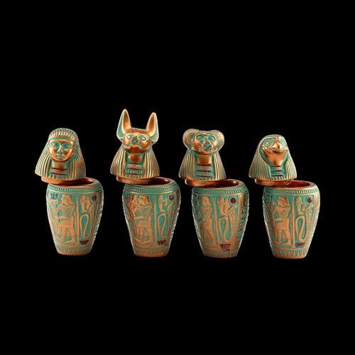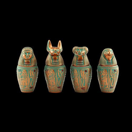 Generic - مجموعة فريدة من تحف فنية كانوبية مصرية تمثل أبناء حورس الأربعة مصنوعة من الحجر ومطلية يدويًا بلون برونزي وهي صناعة مصرية أصلية