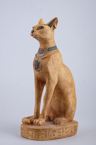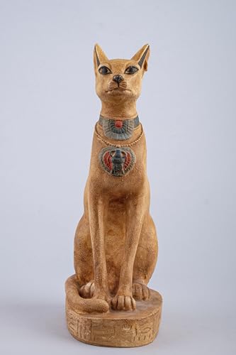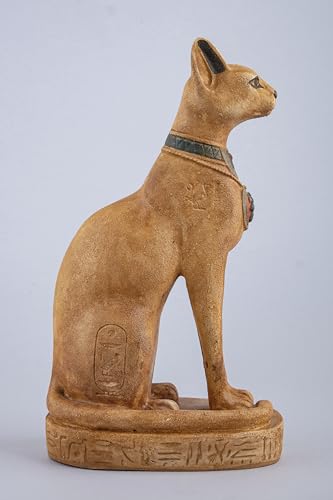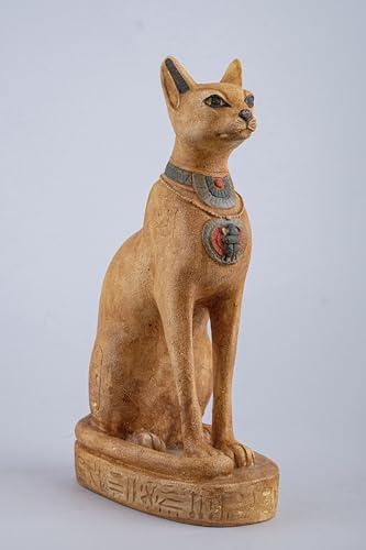 Generic - تمثال قطة باستيت المصرية القديمة من الحجر الثقيل مع الجعران على صدرها ورموز نقوش هيروغليفية حول القاعدة، صنع في مصر
