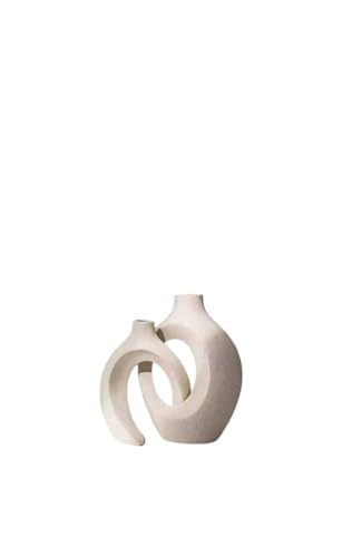 Generic - مزهرية سيراميك بتصميم دائري فريد، لون أبيض كريمي، ديكور منزلي حديث