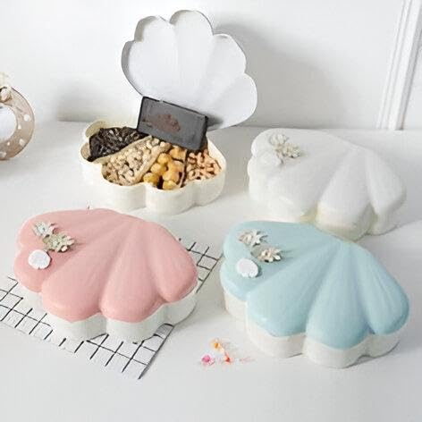 Generic - طبق وجبات خفيفة فريد من نوعه - تصميم صدف بحري مع قاعدة موبايل مدمجة، هيكل بلاستيكي خفيف الوزن، متوفر بالوان متنوعة، رائع للحفلات وليالي الافلام والاسترخاء في المنزل (4 قطع)