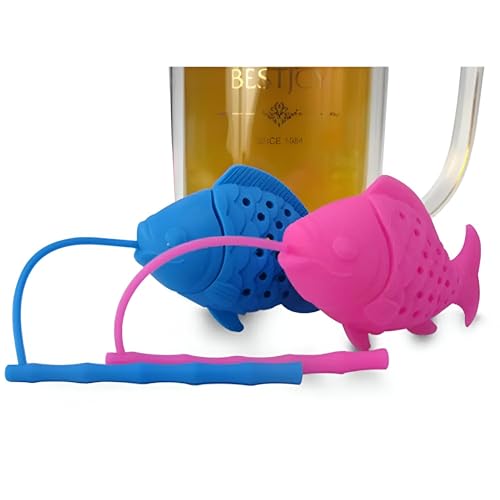 Generic - مصفاة شاي فريدة من نوعها من السيليكون على شكل سمكة رائعة، مثالية لتخمير الشاي الناعم، سهلة التنظيف ورائعة للاستخدام اليومي [متعددة الألوان] (2 قطعة)