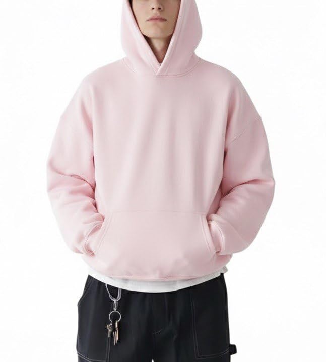 Generic - هودي بقصة مربعة للجنسين للرجال والنساء، خامة قطن ثقيل، بلوفر شتوي كاجوال