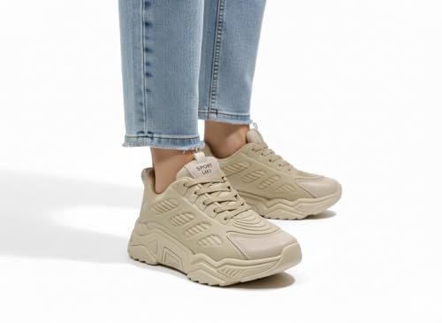 Generic - حذاء رياضي كاجوال للجنسين بنعل سميك - كوتشي مريح للمشي والرياضة بتصميم عصري (أبيض/أسود/بيج)- مقاسات من 37"