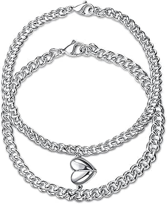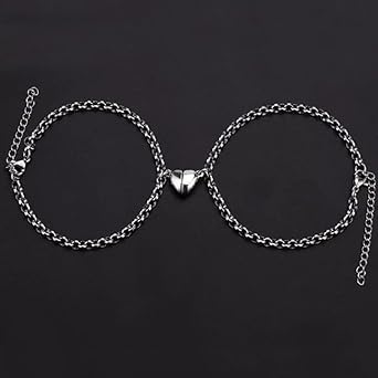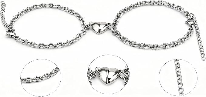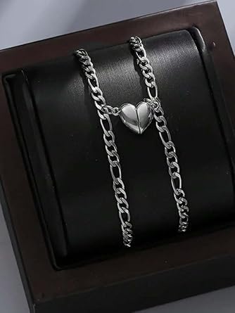 Generic - إسورة نصف قلب للجنسين عدد 2 نصف – لون فضي لامع، تصميم أنيق بسلسلة محفورة، مقاس قابل للتعديل