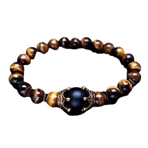 Caiyao - اساور احجار علاجية للجنسين من الاحجار الكريمة الطبيعية سوار قابل للتمدد بدلاية كريستال على شكل قلب وعين النمر 8 ملم خرز مصنوع يدويا للتامل واليوغا بدون كريمة