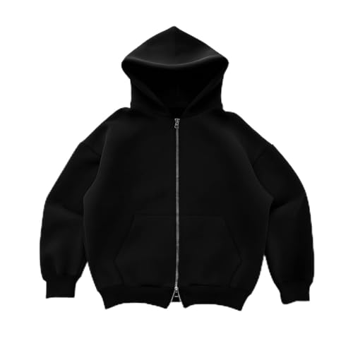 Generic - سويت شيرت ثقيل بغطاء للرأس وقصة واسعة وبطانة داخلية ناعمة من القطن بتصميم مطبوع بنمط عاكس، مزود بسوستة مزدوجة للرجال والنساء
