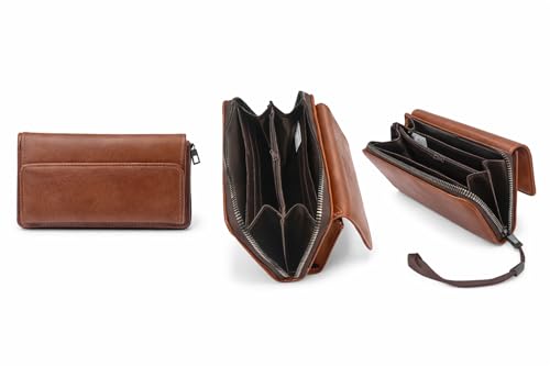 Generic - محفظة يد جلدية فاخرة للجنسين، كلاتش متعدد الطبقات بسحاب، حامل بطاقات مع جراب موبايل وجيب عملات معدنية، بني كلاسيكي