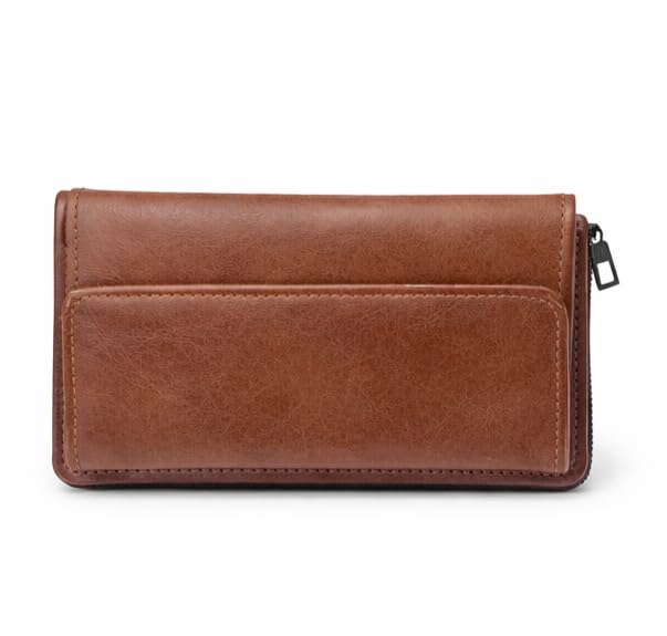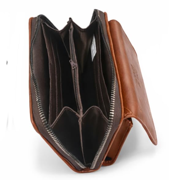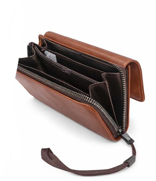 - جلد طبيعي فاخر: محفظة يد أنيقة مصنوعة من الجلد الطبيعي عالي الجودة باللون البني الكلاسيكي، مناسبة للرجال والنساء للاستخدام اليومي والمناسبات الرسمية