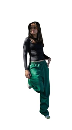 Generic - بنطلون رياضي فاخر بمقاس كبير للجنسين بلون اسود واخضر فورست من ميلتون، ملابس الشارع الكاجوال الحضرية