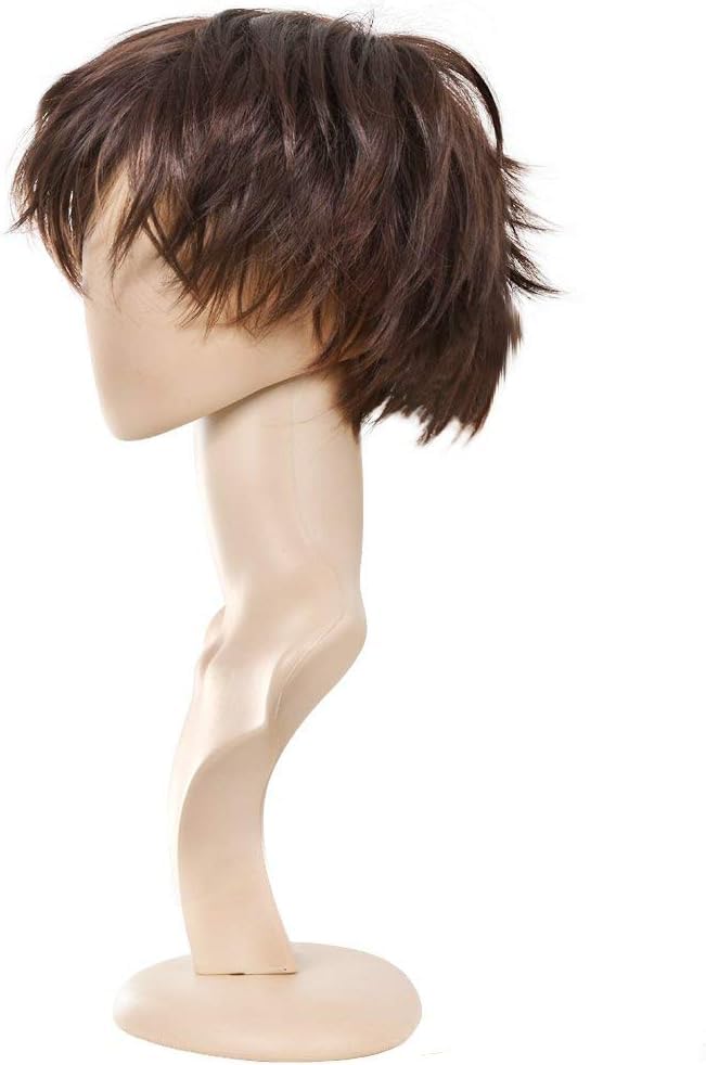 Generic - باروكة قصيرة بطبقات انيمي تنكرية للجنسين، شعر منفوش مفرود بلون بني غامق، نمط طبيعي للحفلات التنكرية
