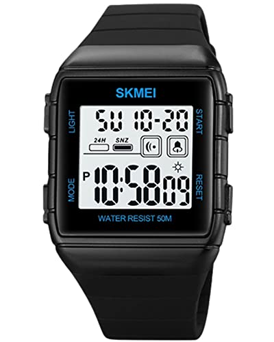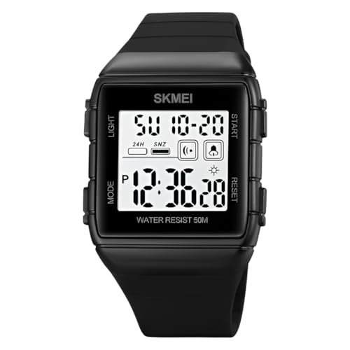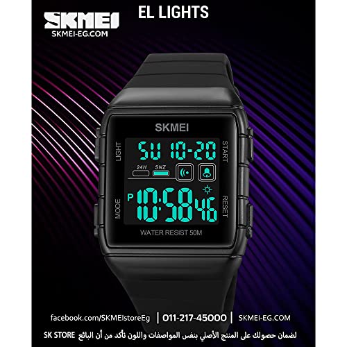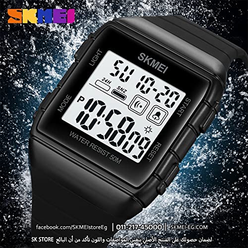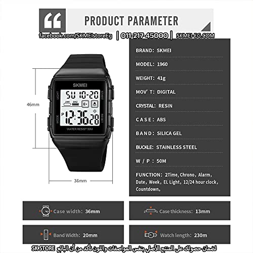 SKMEI WATCH - ساعة رياضية كلاسيكية سمارت بسوار قابل للتمدد رفيع اسود للجنسين من سكيمي 1960، مع منبه وتقويم وساعة ايقاف، ساعة رياضية مقاومة للماء
