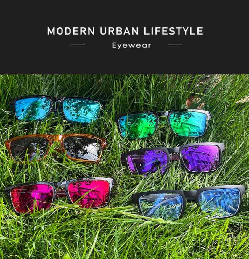 fashion mania - نظارة شمسية بعدسات مستقطبة مربعة للجنسين تمنع الوهج بنسبة 99% من الاشعة فوق البنفسجية 400، عدسات حمراء مبردة غير قابلة للانزلاق ووسادات انف باطار اسود غير لامع من اوربان لايف ستايل اساسي