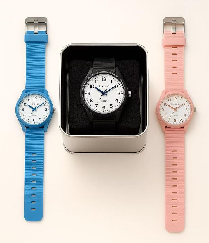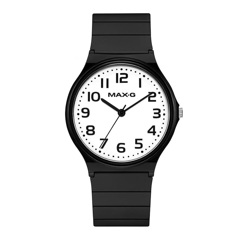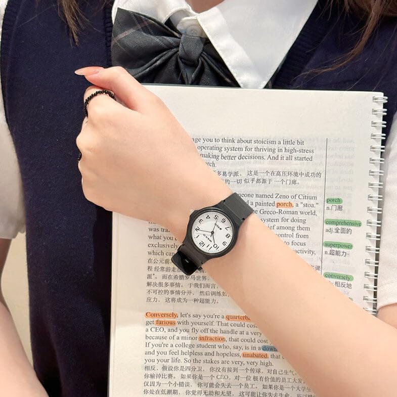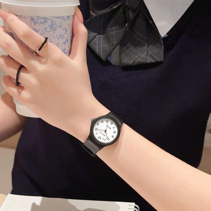 Generic - ساعة كوارتز للطلاب من الجنسين - تصميم اسود رفيع، سوار مطاطي، مينا رقمي شفاف، حركة صامتة - ساعة تعليمية للاطفال والمراهقين.
