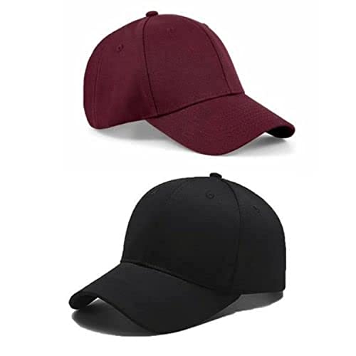 Generic - اثنين كاب رياضي البيسبول و السناباك للجنسين، لون عنابي واسود , مقاس واحد