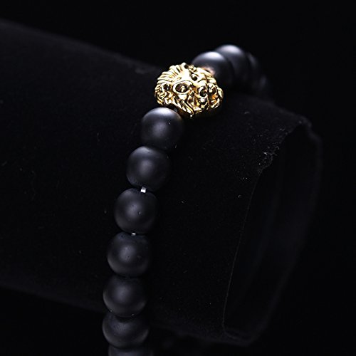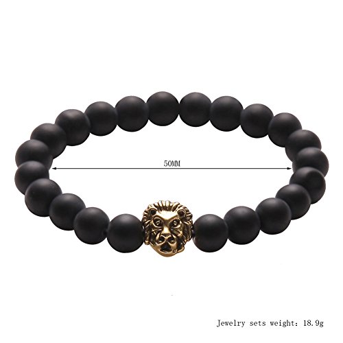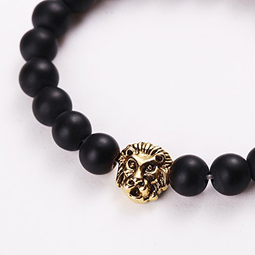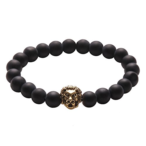 generic - سوار محظوظ قابل للتمدد بتصميم كلاسيكي على شكل رأس اسد بوذا وورق شجر وشراشيب للجنسين