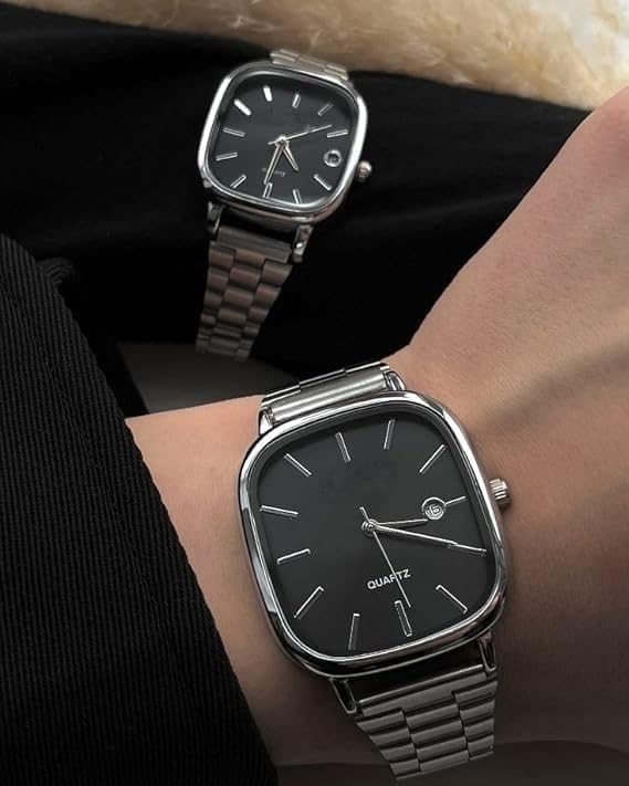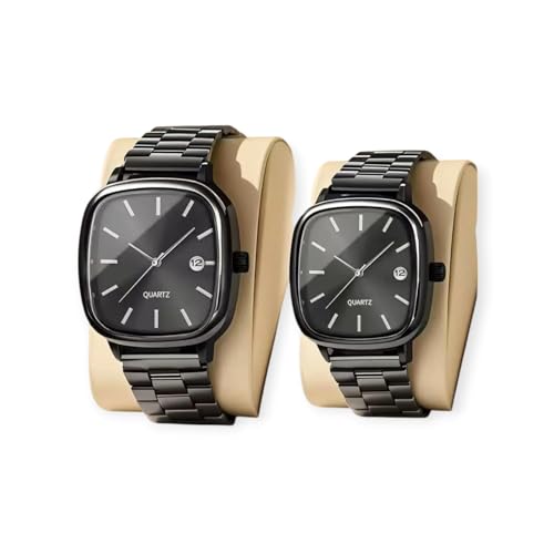 Generic - ساعة للجنسين طقم ساعات للزوجين، ساعات تناظرية كلاسيكية للرجال والنساء، مقاومة للماء، حزام من الفولاذ المقاوم للصدأ، مع علبة هدية