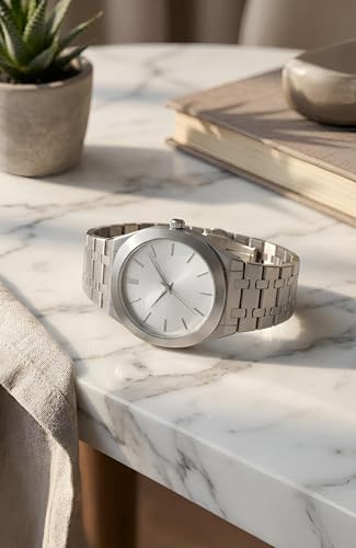 Generic - ساعة للجنسين - سوار فضي انيق من الستانلس ستيل مع حركة كوارتز متينة، مثالية للعمل والمناسبات الرسمية، تتميز بتصميم كلاسيكي عصري
