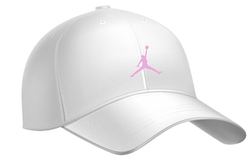 - طاقية بيضاء رياضية للجنسين مع حماية من الشمس مزودة بشعار بأشكال مميزة، وردي (M.J)