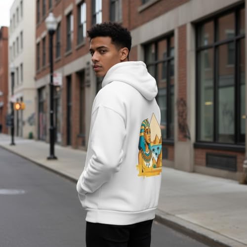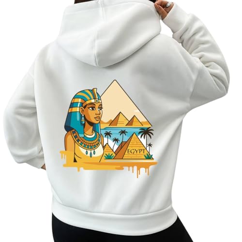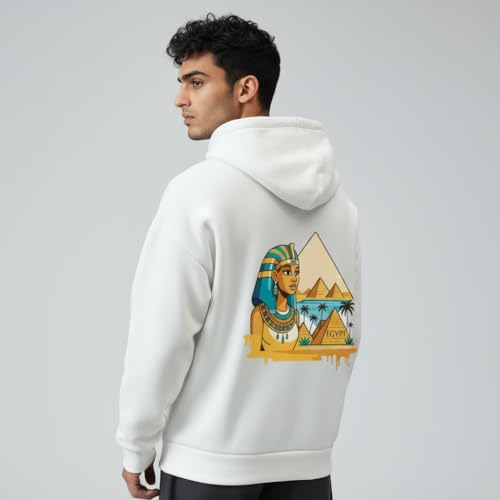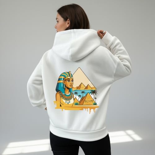 Generic - هودي ابيض للجنسين - تصميم الملكة المصرية والاهرامات | سويت شيرت الفن الفرعوني | قطن ميلتون فاخر