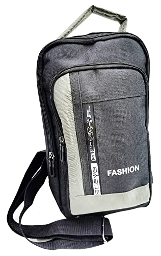 شنطة يد كروس للجنسين للشباب والرجال، قماش جينز سميك، رمادي داكن